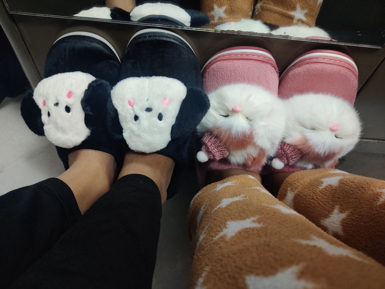 My sister and I went to the market to shop for warm, cozy slippers. Naturally, we were looking for something cute {because vibes!}